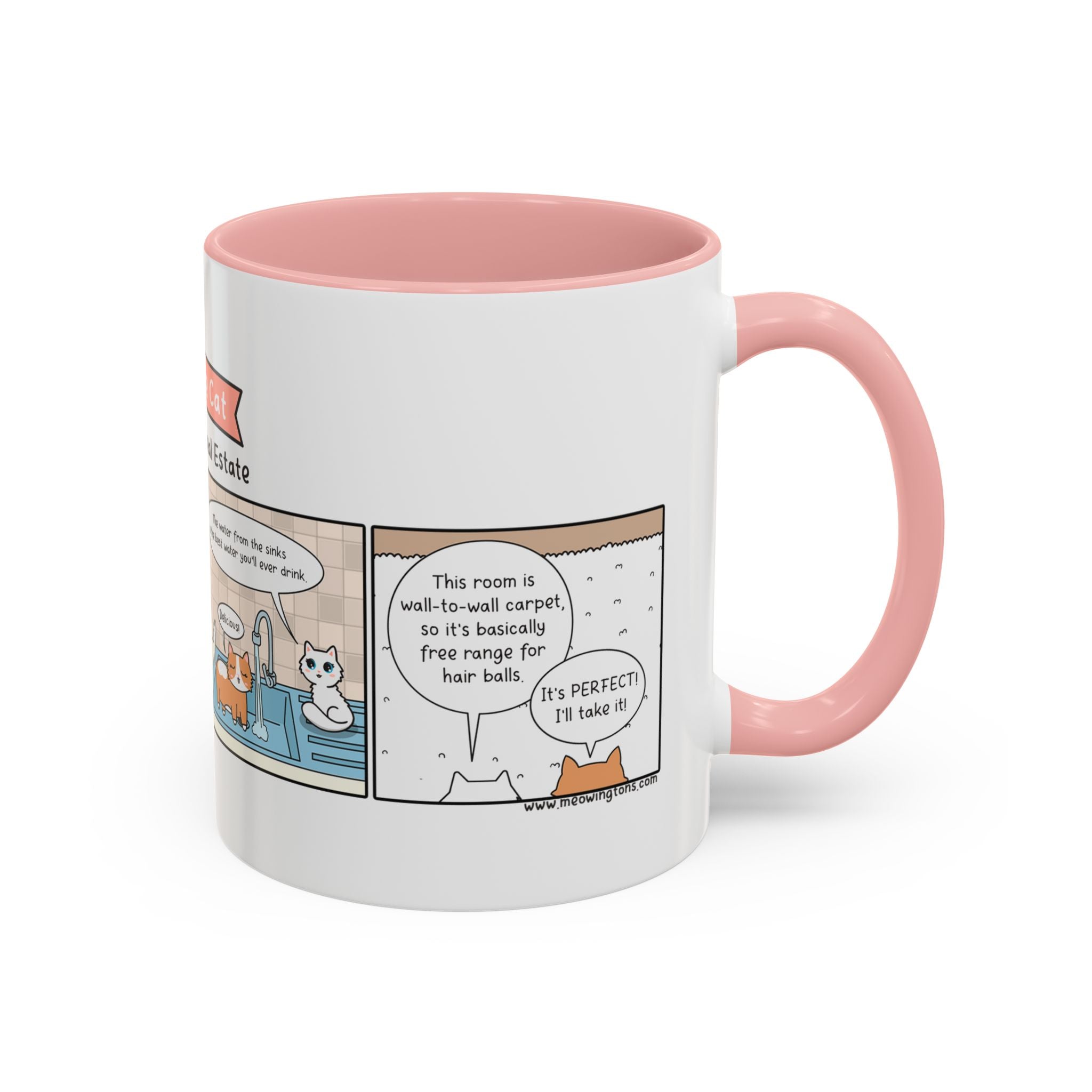 However, the true highlight of this mug is the enchanting comic strip featuring Millie, the cherished marshmallow fluff sidekick from the Milton the Cat webcomic. Millie purr-fectly illustrates what it's like to be a cat who knows it's all about location, location, location--especially when it comes to hairballs.