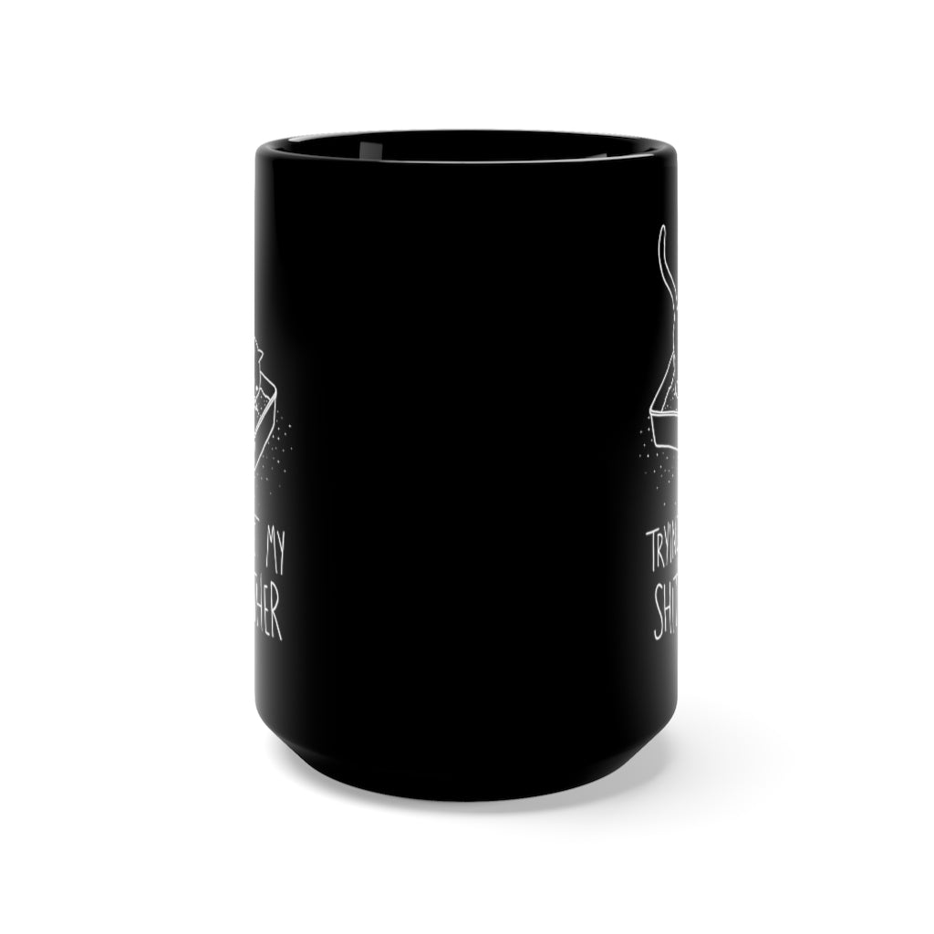Pobody’s Nerfect. But at least you’re trying to get your shit together. And what better way to inspire yourself than with a sassy cat mug? It's the perfect mug for the office or at home to inspire your day. Our 15-ounce (0.44 l) Shit Together Black Cat Mug is crafted from sleek black ceramic and is dishwasher and microwave safe! Featuring handwritten block lettering that says, “Trying to Get My Shit Together” paired with an illustration of a kitty burying its business in the litter box, this funny cat mug is guaranteed to start your morning off right.