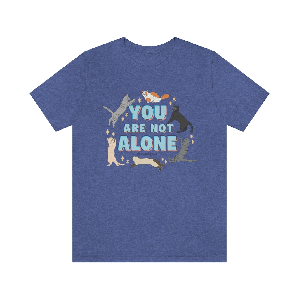The You Are Not Alone Cat T-Shirt is available in the following options: Heather True Royal / S, Heather True Royal / M, Heather True Royal / L, Heather True Royal / XL, Heather True Royal / 2XL, Heather True Royal / 3XL, Silver / S, Silver / M, Silver / L, Silver / XL, Silver / 2XL, Silver / 3XL, Heather Peach / S, Heather Peach / M, Heather Peach / L, Heather Peach / XL, Heather Peach / 2XL, Heather Peach / 3XL, Heather Mauve / S, Heather Mauve / M, Heather Mauve / L, Heather Mauve / XL, Heather Mauve / 2XL, Heather Mauve / 3XL. Check the product page for current stock availability.