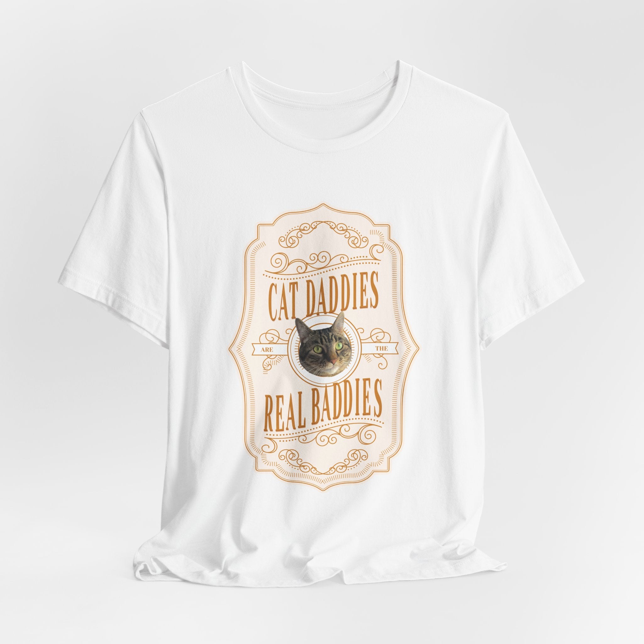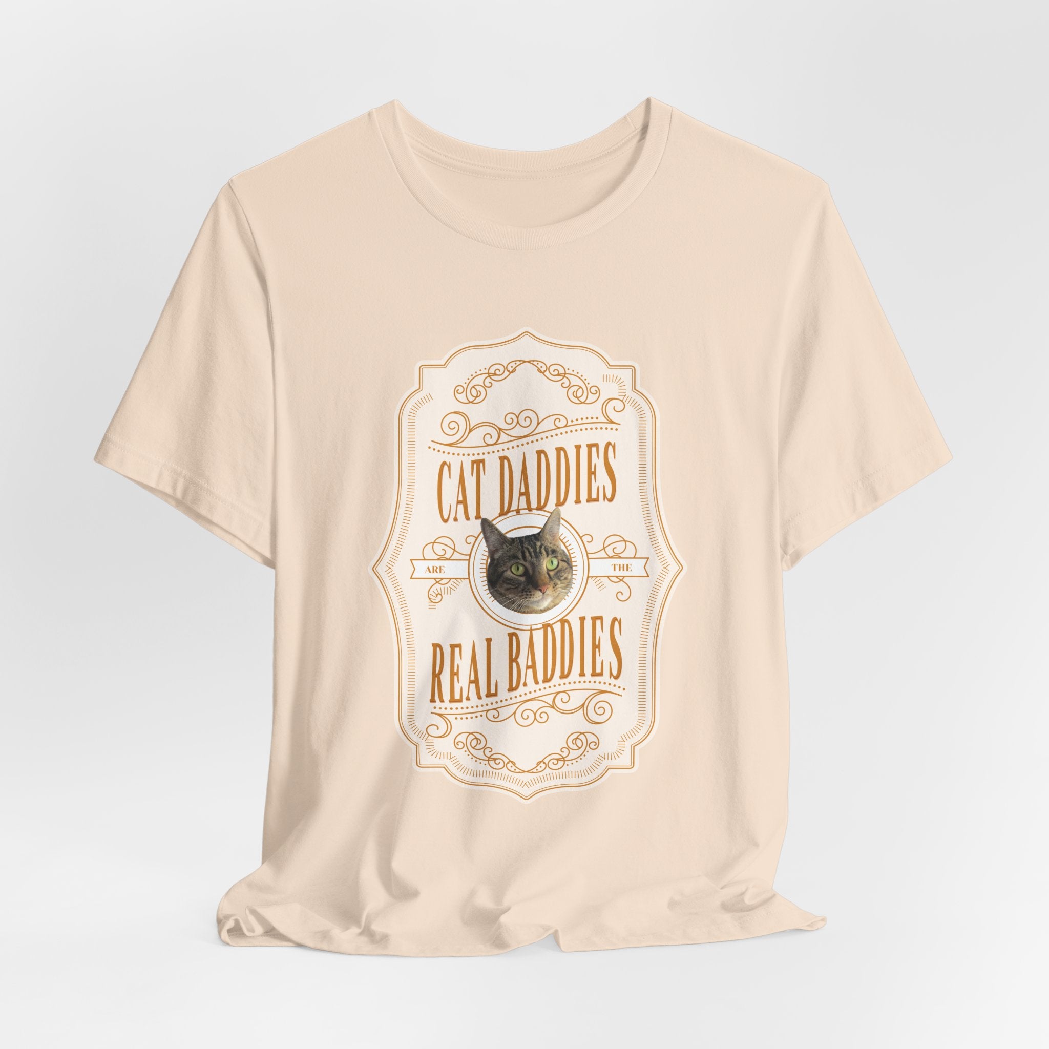 On the prowl for a one-of-a-kind gift that will make your favorite cat dad purr with pride? Look no further. The Custom “Cat Daddies Are The Real Baddies” Whiskey Label T-Shirt turns their beloved kitty into the star of a bold whiskey label inspired design. Each shirt is custom printed with your cat’s adorable face, surrounded by the playful phrase “Cat Daddies Are The Real Baddies.”