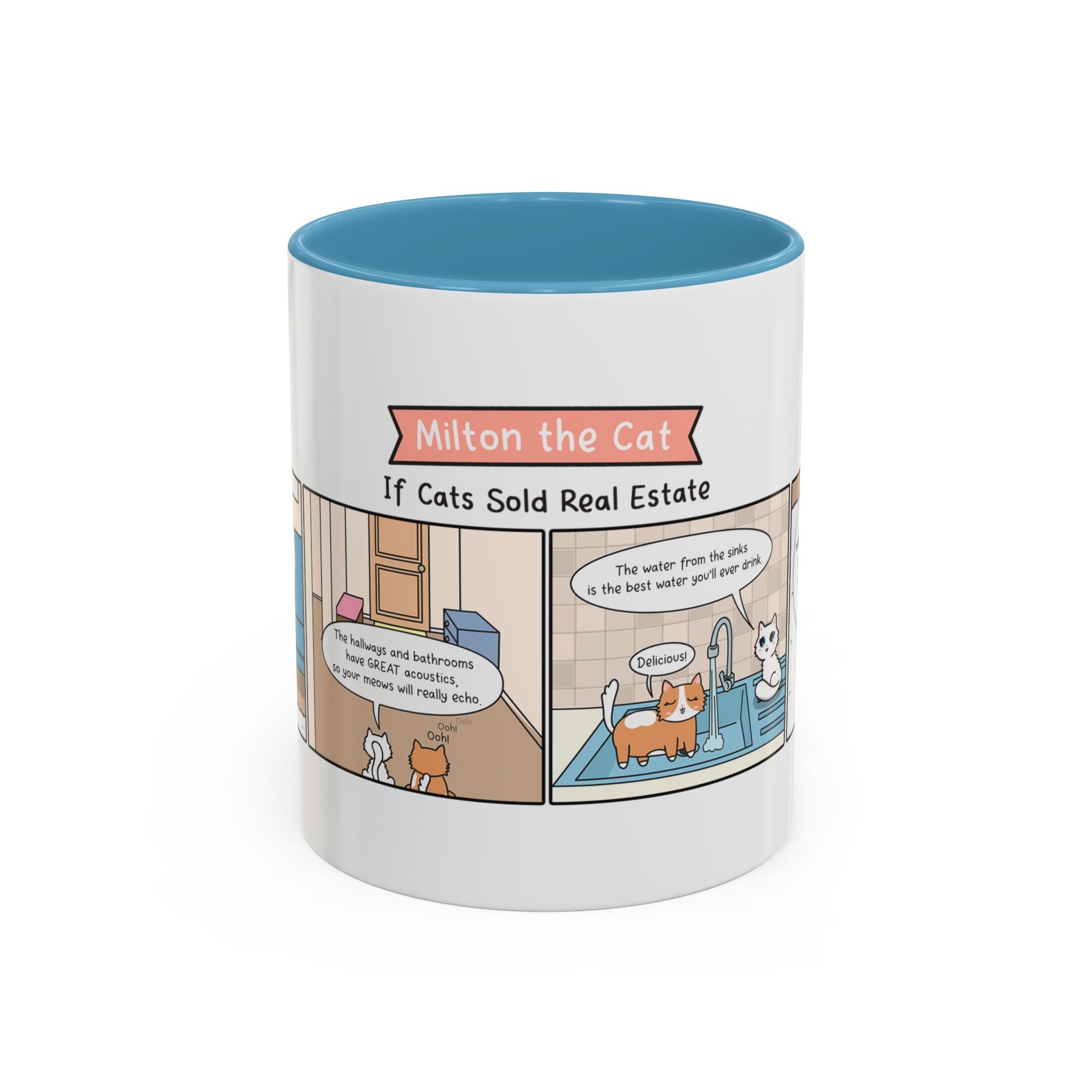 However, the true highlight of this mug is the enchanting comic strip featuring Millie, the cherished marshmallow fluff sidekick from the Milton the Cat webcomic. Millie purr-fectly illustrates what it's like to be a cat who knows it's all about location, location, location--especially when it comes to hairballs.