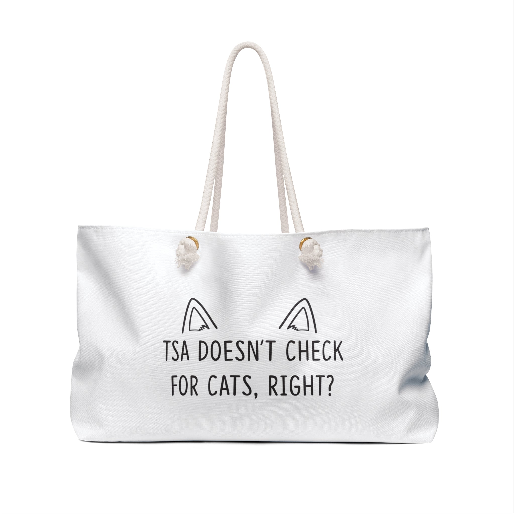 Whether traveling by train, plane, or automobile, this Weekender bag is the only luggage you’ll need. Checked baggage? What’s that? Make your traveling that much easier – and that much more adorable – with this Security Cat Weekender Bag. This travel companion will happily accompany you through TSA.
