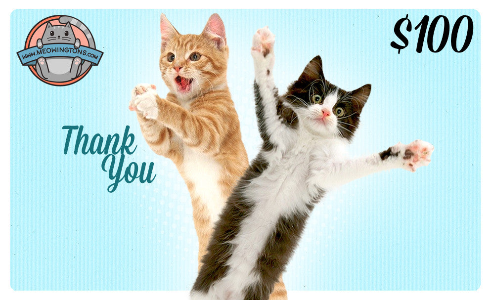 Shopping for your cat loving friend or loved one, but not sure what to give them? Well look no further - Meowingtons offers gift cards for $10, $25, $50, and $100, that can be used towards any of our apparel, accessories, and decor! Give them the gift of choice from our unique selection of puurr-fect cat themed merchandise!Our gift cards do notexpire and have no additional processing fees. Theyare delivered by email and contain instructions to redeem them at checkout. You can either gift them as a print out or have it sent to them via email. Gift giving has never been this easy and thoughtful!